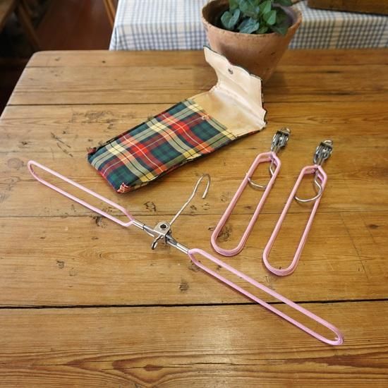 イギリスで買い付けましたヴィンテージのトラベル用のハンガー3本セットです。