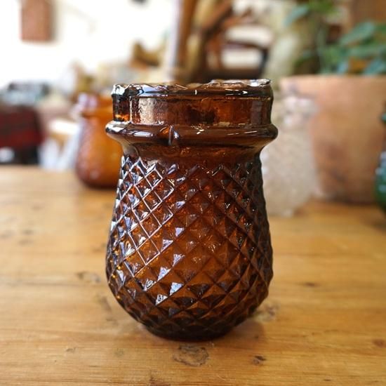 イギリス アンティーク ヴィクトリアン キャンドルポット アンバー(濃いめ)