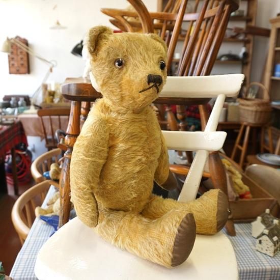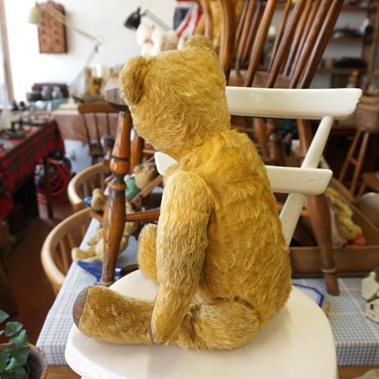たくさん愛されて毛の抜けた箇所があったりしますが、汚れが全く無く、大切に扱われていたんだな、、、不思議とこういうベアは表情が穏やかでいいんですよね。。。