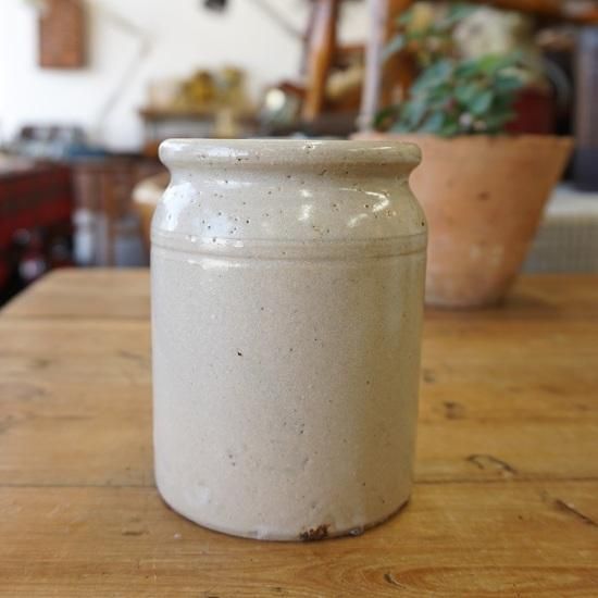 イギリス アンティーク ストーンウェアポット ジャムポット ジャムジャー 中サイズ くびれ有 251103