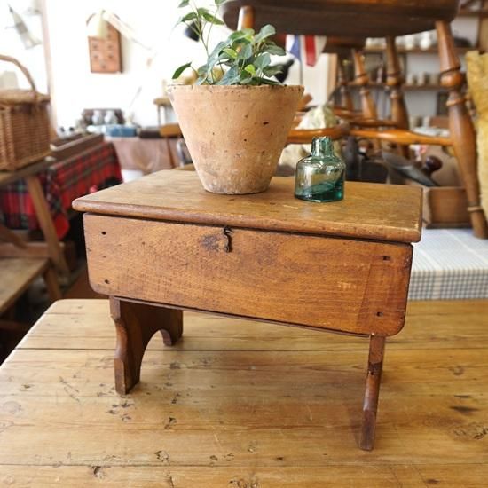 ミルクスツールのようなロースツールですが、収納付きで道具箱としても使えます。
