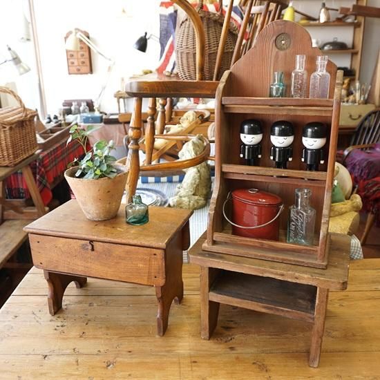 ミルクスツールのようなロースツールですが、踏み台としても使えますし、飾り台としても使えますね!