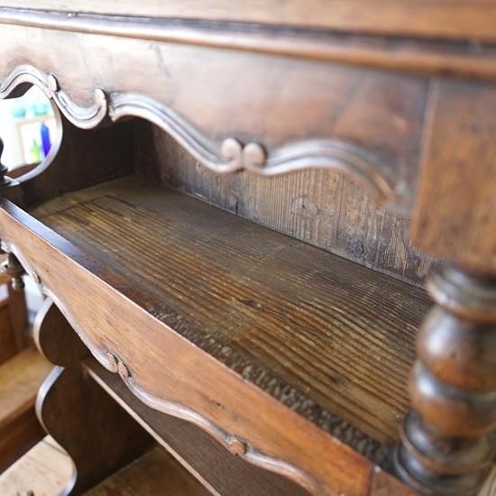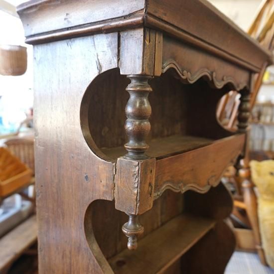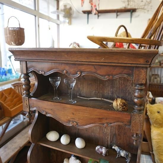 フランスアンティークの装飾がとても素敵なディスプレイシェルフです。